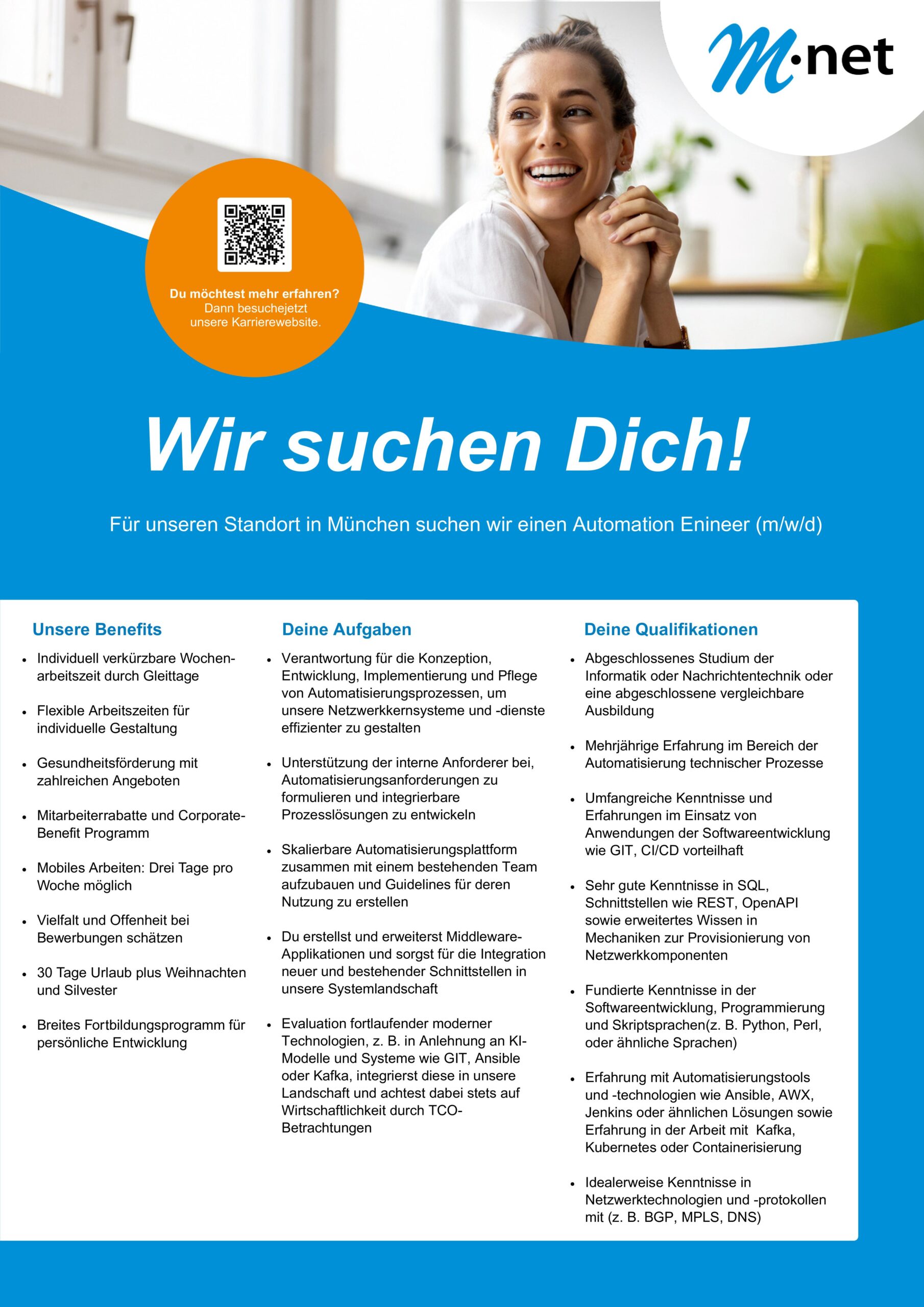 As regional telecommunications provider M-net supplies large parts of Bavaria, the greater Ulm area and large parts of the Hessian district of Main-Kinzig with future-proof communications technology. The portfolio is tailored to the communication needs of Business and private customers and ranges from voice and data services - on a fixed and mobile network basis - to complex site networks and the provision of a wide range of national and international radio and TV/HDTV services.