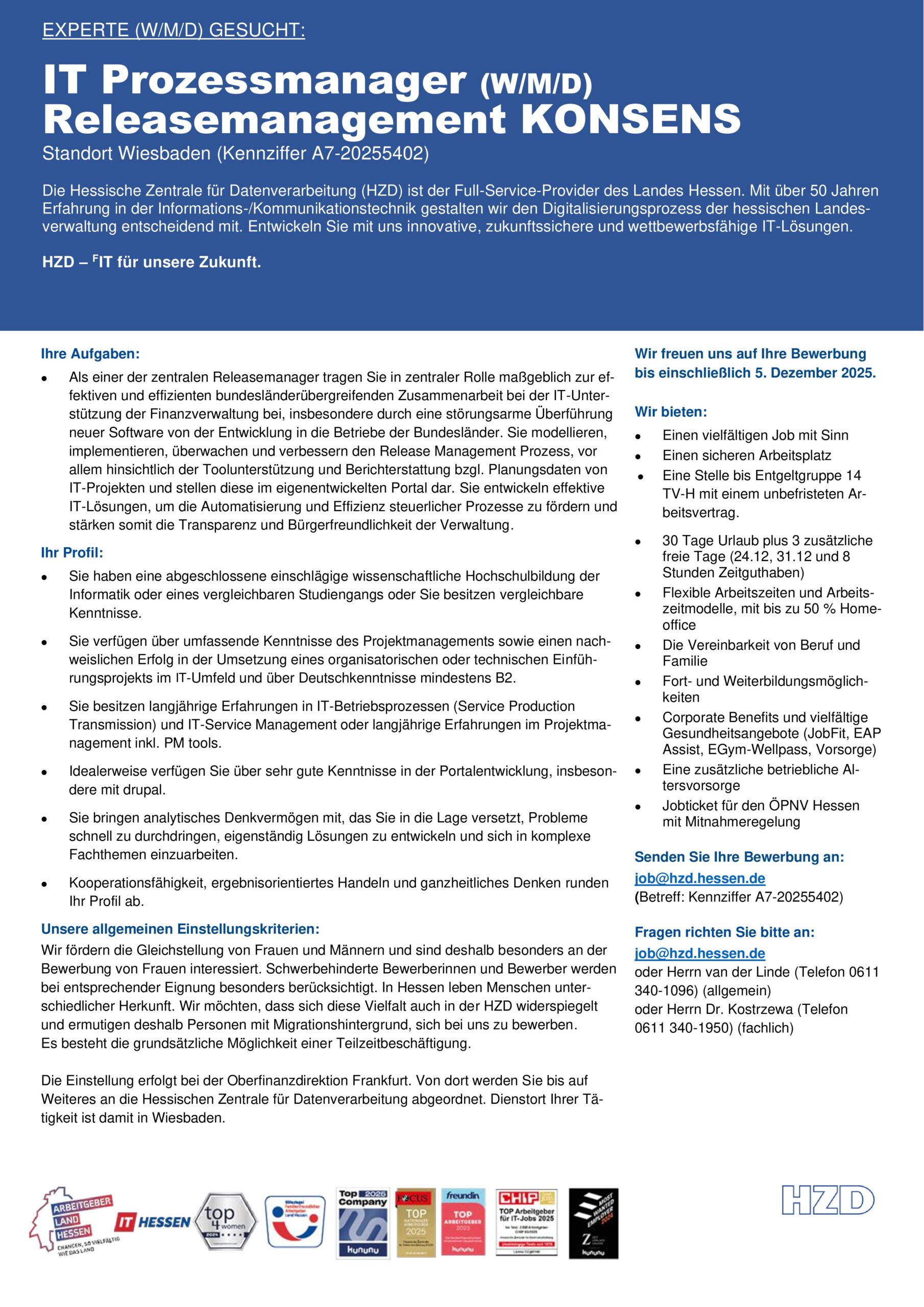 IT-Prozessmanager (w/m/d) Releasemanagement KONSENS
