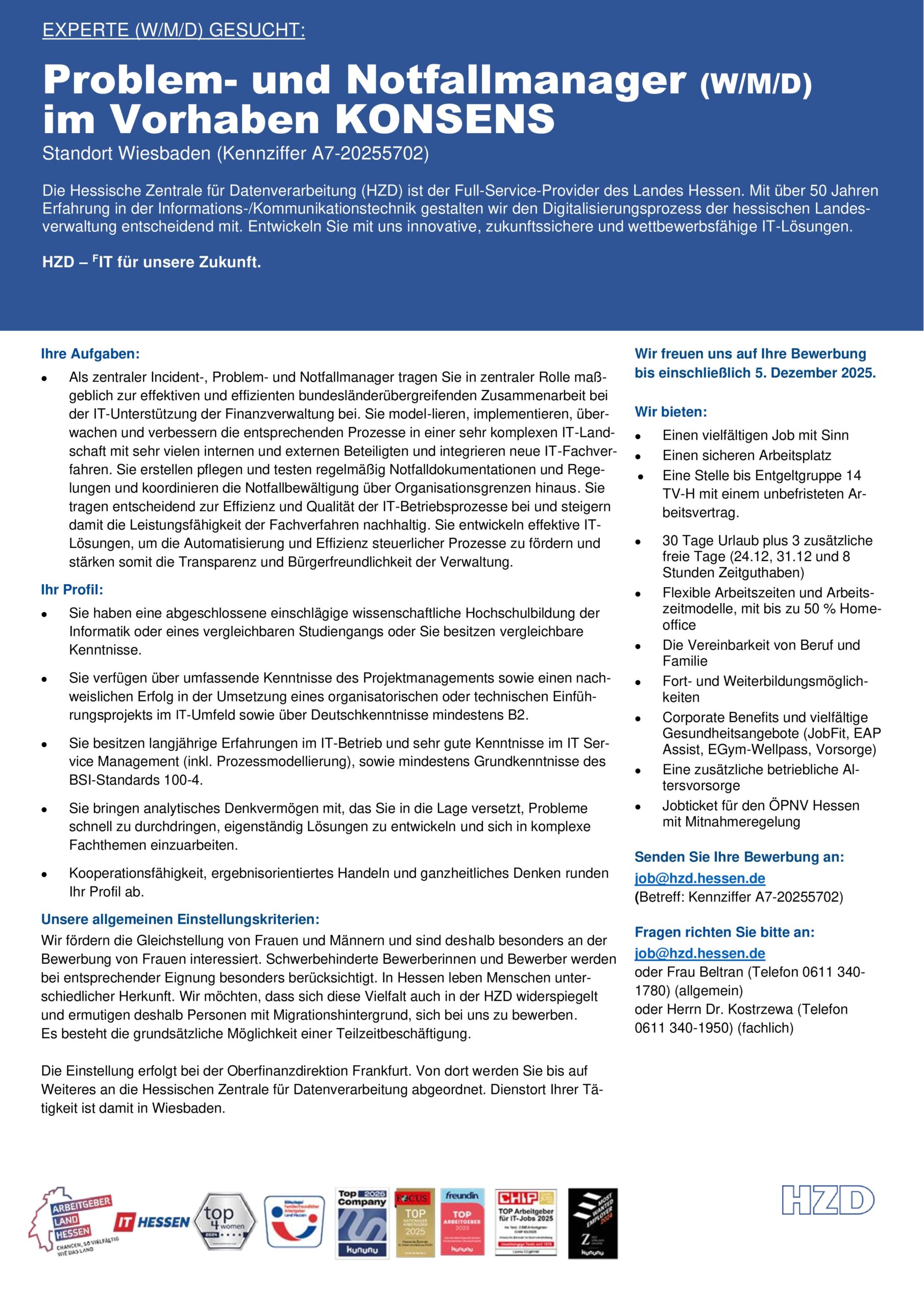 Problem- und Notfallmanager (w/m/d) im Vorhaben KONSENS